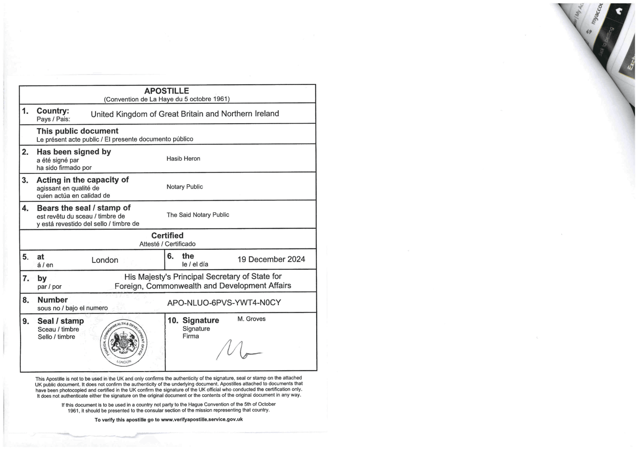 3. The apostille certificate (you can search the number at the URL provided at the bottom of the certificate to verify its authenticity)